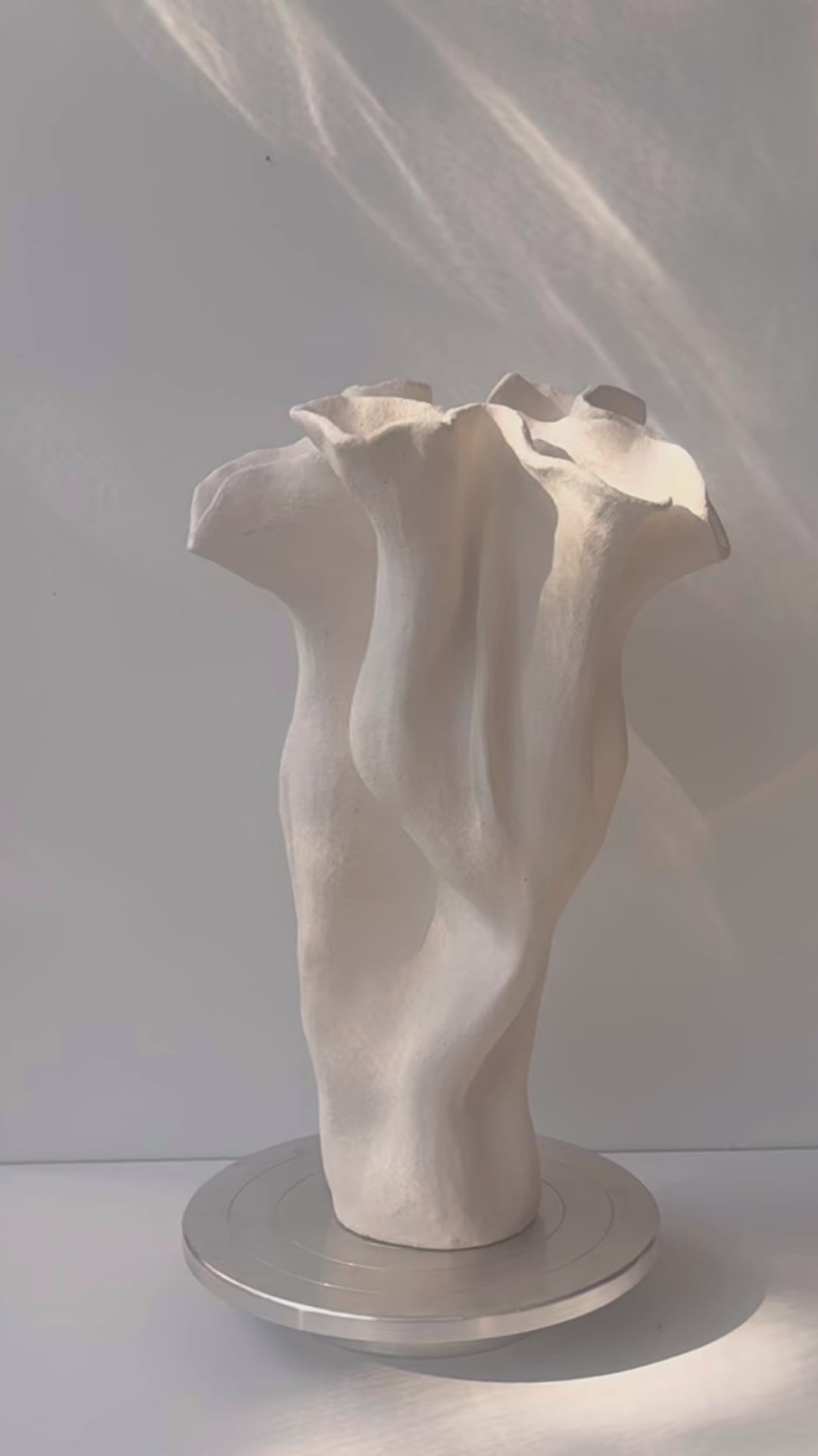 The Whispering Wave Vase has an organic,form that flows gracefully. Its curves and soft contours create a sense of motion, and movement which resembles waves of the ocean.