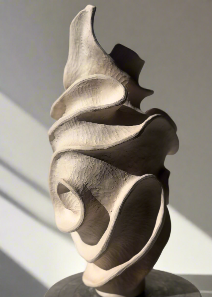 Whispering Wave Vase flows in soft, wave-like curves that echo the rhythm of the sea. Its surface has been carefully carved to add depth, dimension, and a rich texture reminiscent of the sea’s natural patterns and revealing an organic, raw beauty.